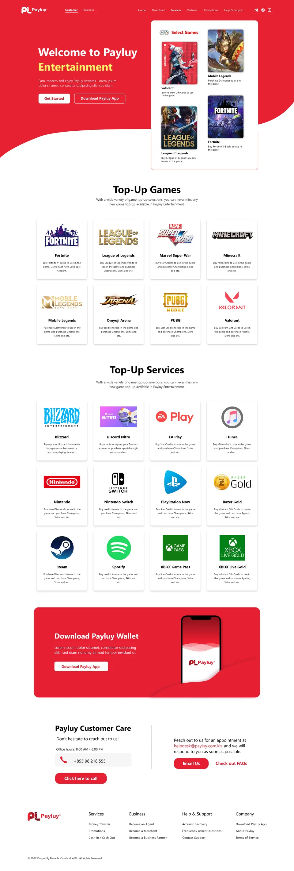 I present the website design crafted for "Payluy", a leading e-wallet company based in Cambodia. This project was undertaken during my tenure as a UI/UX Designer intern at ProximaX, where I was tasked with the challenge of revamping Payluy's online presence to enhance user experience and engagement. Leveraging Adobe XD, I developed a user-centric design, focusing on ease of navigation, aesthetically pleasing visuals, and a streamlined user journey. The design not only met but exceeded the client's expectations by embodying the company's vision and values, thus significantly contributing to its digital footprint and user satisfaction.